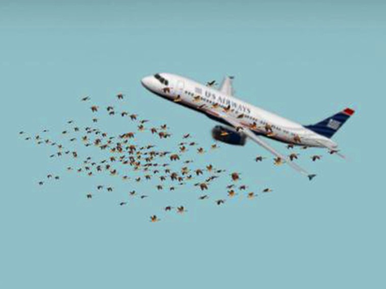 Horšie sú ale prípady nasatia vtáka do motora. Motory lietadiel sú síce navrhnuté tak, aby odolali nárazom menších druhov vtákov, napriek tomu ale často krát dochádza k ich poškodeniu. Najhoršou kombináciou je kolízia s kŕdľom veľkých vtákov. Najznámejší takýto prípad je let Airbusu A320, ktorý sa tesne po štarte z New York-skeho letiska La Guardia zrazil s kŕdľom kanadských husí. Tie mu poškodili všetky motory a lietadlo muselo núdzovo pristáť na rieke Hudson.